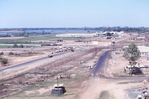 The intersection of Hwy 1A and the road to Vung Tau. That's the Dong Nai river in the distance. Saigon is to the left, Vung Tau is along the road that comes toward you. The perimeter wire is the farthest south reach of sprawling Long Binh post. Oh, and that's a Shell gas station that's going up at the far side of the intersection.