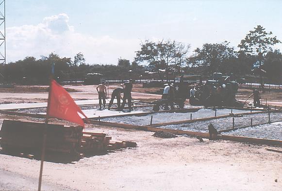 A group of soldiers pressed into service consructing a new basketball court in the area just in front of the 151st TC.