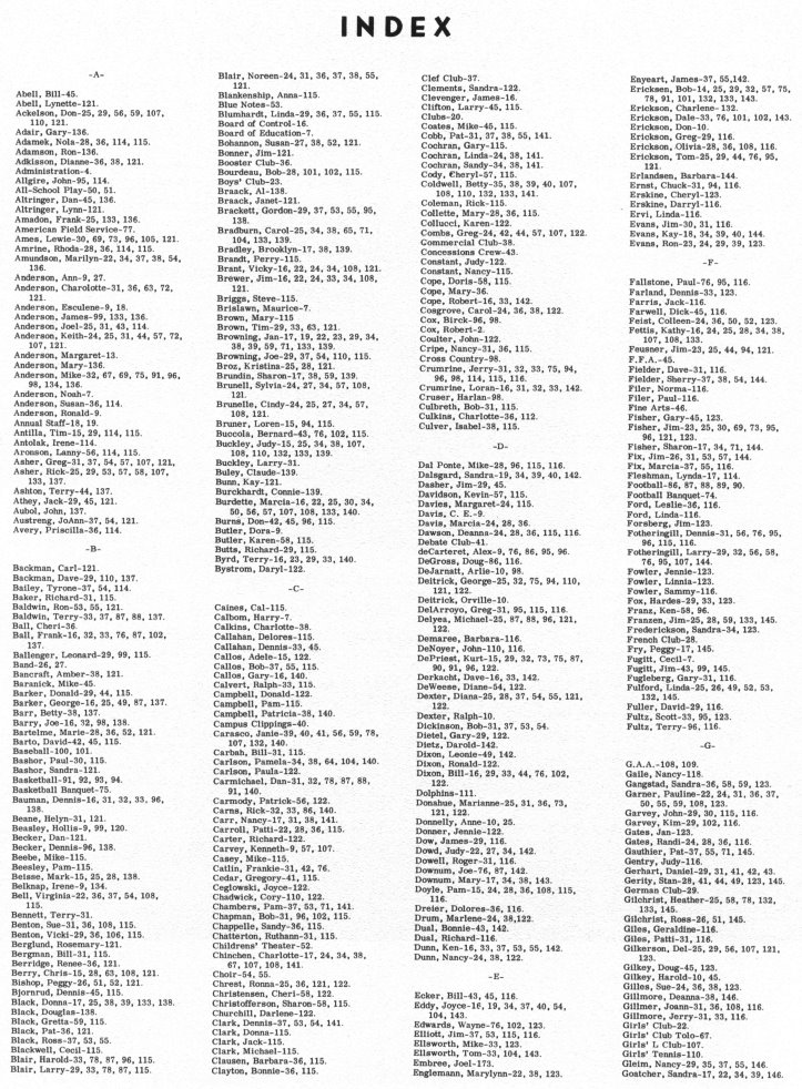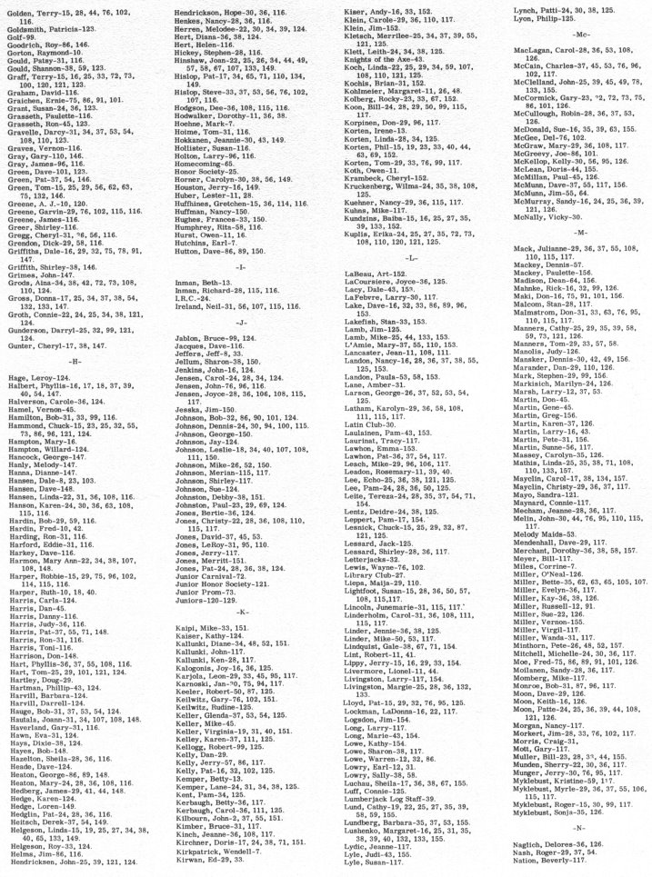 The standard yearbook pages are 600 X 776, so you may profit by viewing them full screen. In most browsers, the F-11 key toggles in and out of full-screen mode.
